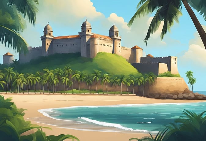The castle was constructed by the Portuguese in 1482, showcasing a mix of Gothic and Renaissance architectural styles. Its walls are made of rough-hewn sandstone, bonded with mud and lime mortar, providing strength and durability.
